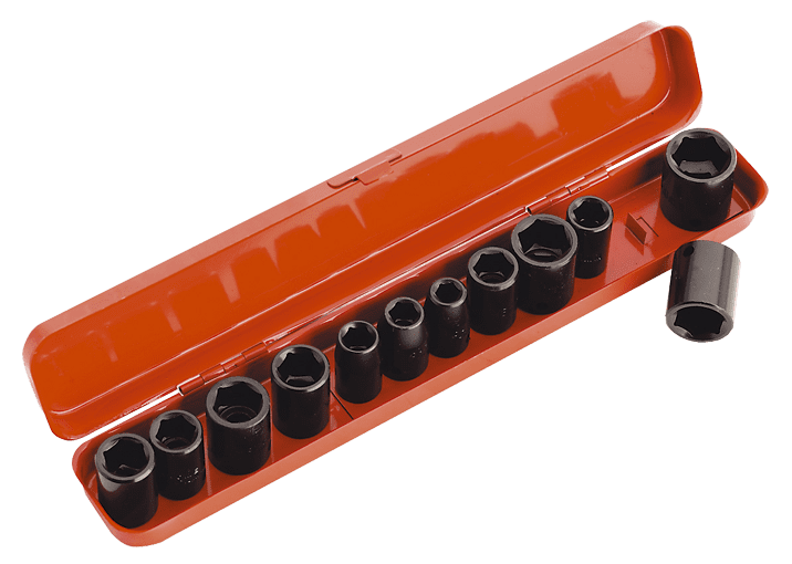 Durable 12-piece 3/8″ drive impact socket set, featuring Chrome Vanadium steel and WallDrive® sockets for superior grip and corrosion resistance.