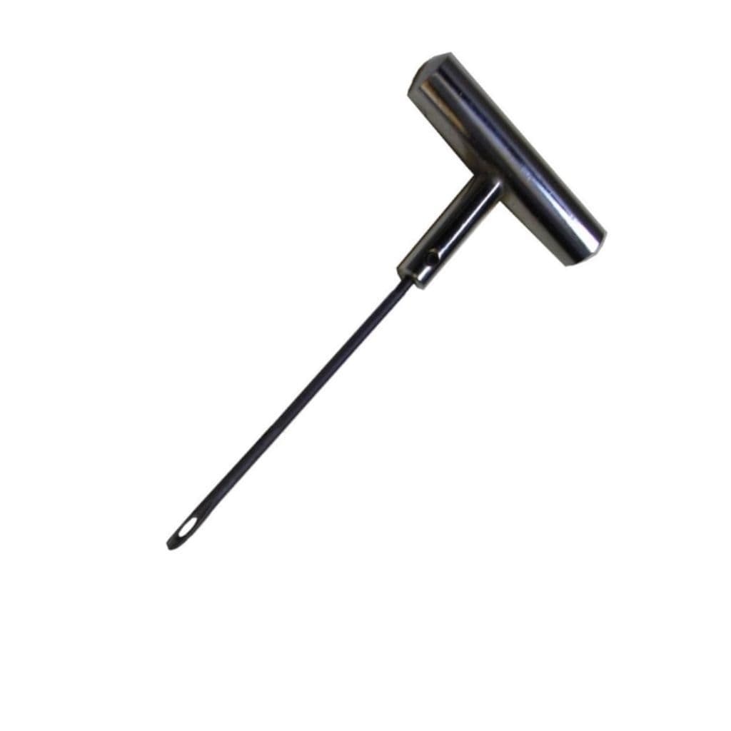 Professional-grade T-handle tool for inserting tyre repair cords into truck, plant, and earthmover tyres. Features a 6″ (150mm) needle.