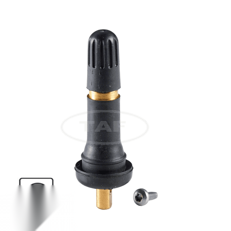 Premium rubber snap-in TPMS valve (TAF Type 18 & 19) for Schrader GEN Faraday and EZ sensors. Essential for reliable tyre pressure monitoring systems.