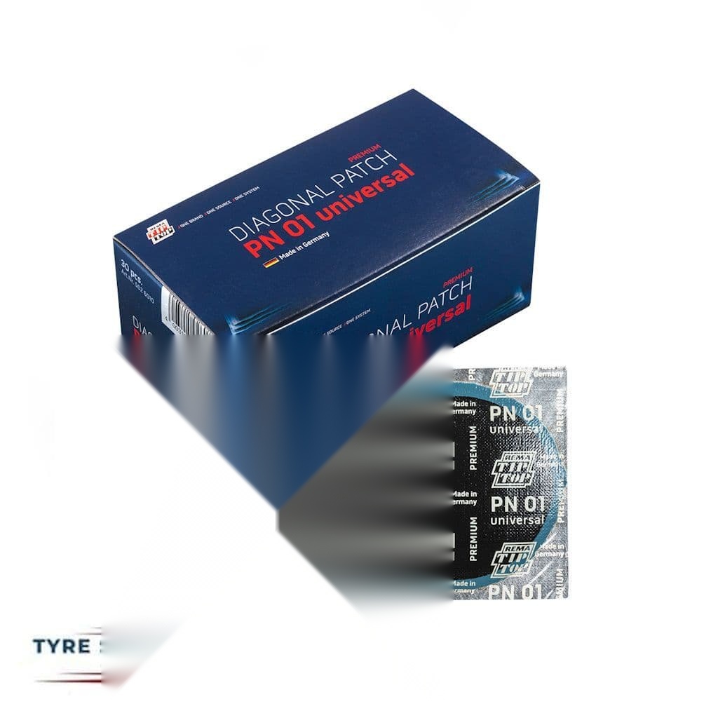 Premium Rema TipTop PN 01 universal tyre patches (55mm) for radial & cross-ply tyres. Box of 30, 1 cord layer.