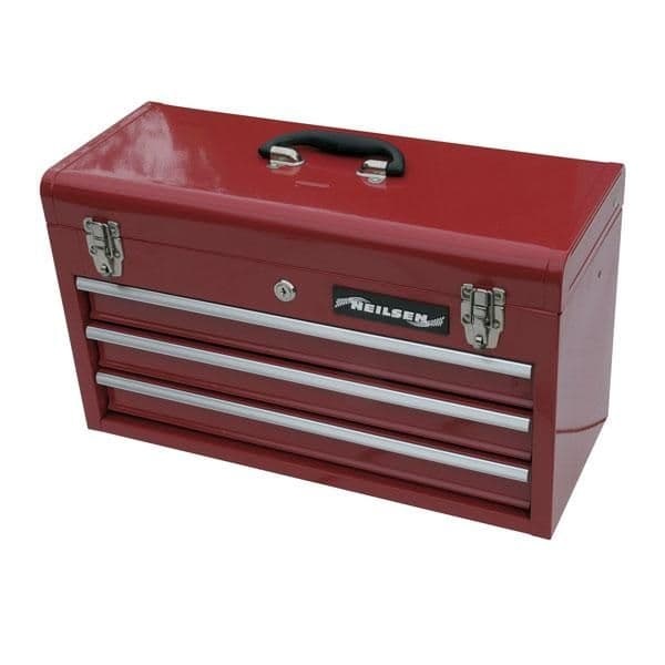 Crafted from robust metal, this toolbox is built to withstand the rigours of daily workshop use. Its vibrant red finish not only adds a touch of classic workshop aesthetic but also provides a protective layer against corrosion and wear. The three smooth-action drawers offer ample storage for a variety of tools, from spanners and sockets to tyre repair kits and valve tools, keeping them neatly compartmentalised.
